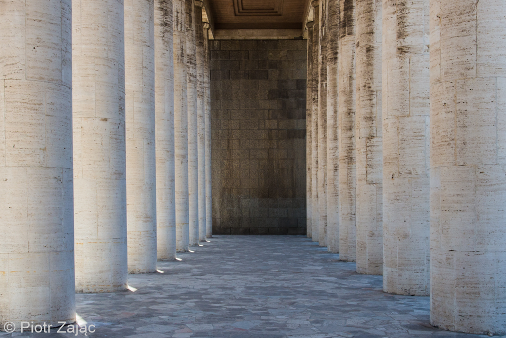 Final scenes of the funeral were filmed between columns of the portico. The tombs were built for the film between columns on the Viale della Scultura side.